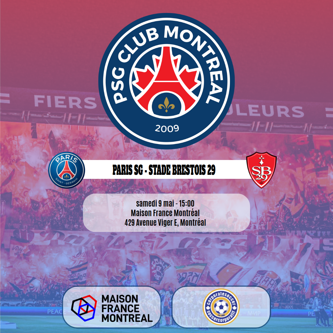 In addition to the match on the big screen and our bar offer, you will have the chance to win PSG and PSG Club Montreal prizes by participating in the organized games, and you will be able to immerse yourself in the atmosphere of the PSG Club Montreal, singing and supporting PSG with us!