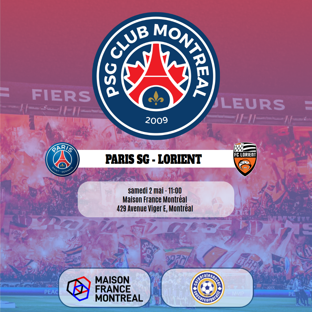 Venez vivre le match du PSG à la Maison France avec le PSG Club Montréal.